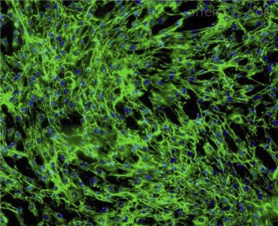 来自ScienCell研究实验室的HHIRSC是从人类头皮中分离出来的。HHIRSC在P0冷冻保存并冷冻。每个小瓶含有>5×10^5个细胞,1ml体积。HHIRSC的特征在于它们的间充质细胞形态和用纤连蛋白和CD105特异性抗体的免疫荧光。HHIRSC对HIV-1,HBV,HCV,支原体,细菌,酵母和真菌均为阴性。在ScienCell研究实验室提供的条件下,HHIRSC保证进一步扩大10次人口倍增。​