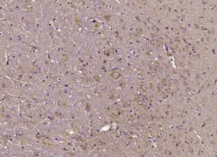 多聚甲醛固定,石蜡包埋(小鼠脑);用柠檬酸钠缓冲液(pH6.0)煮沸15min后获得抗原;用3%过氧化氢阻断内源性过氧化物酶20分钟;阻断缓冲液(正常山羊血清)在37℃下30min;用(磷酸-Akt1(Tr34))多克隆抗体进行抗体孵育。1:400在4°C下过夜,然后根据SP试剂盒(兔子)说明和DAB染色进行操作。